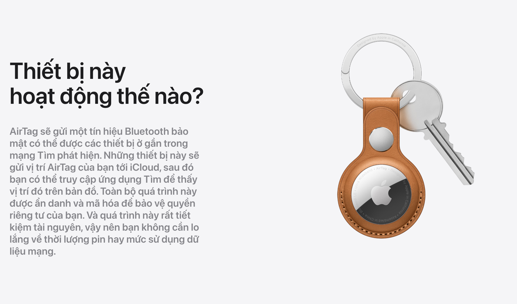 - Dữ liệu địa điểm và lịch sử không bao giờ được lưu trữ trên AirTag