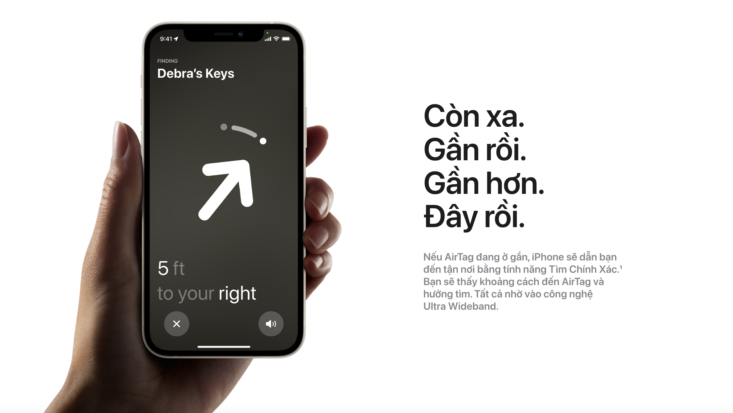 - Tính năng Tìm Chính Xác với công nghệ Ultra Wideband dẫn bạn đến ngay vị trí thẻ AirTag ở gần bạn (trên một số phiên bản iPhone).1