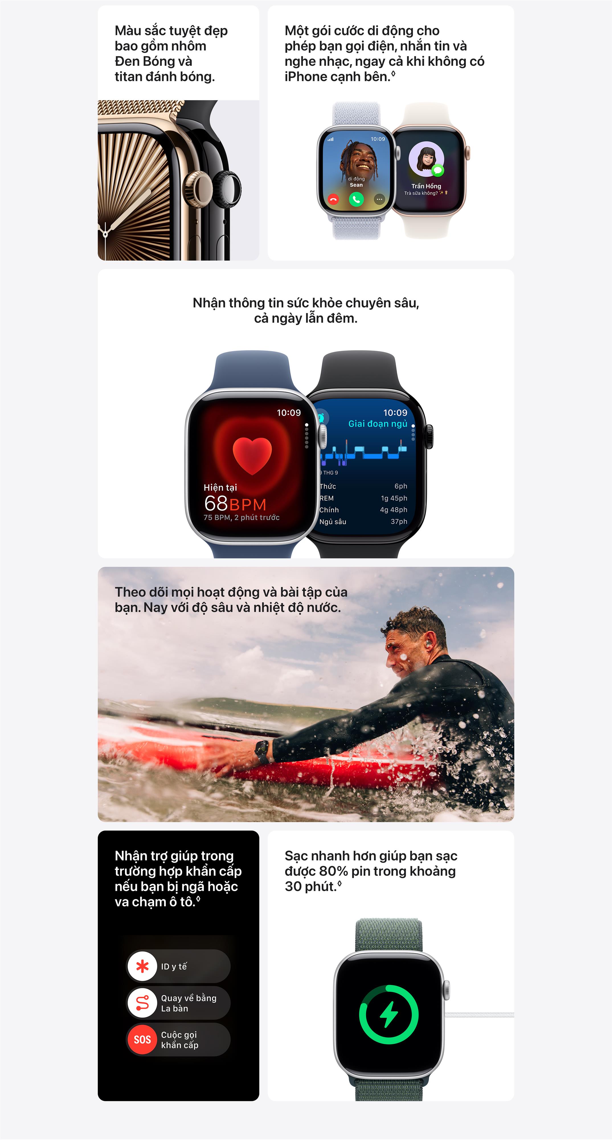 Khi đeo Apple Watch, bạn sẽ có bạn đồng hành trong quá trình tập luyện giúp đo lường mọi chuyển động, mọi bài tập từ chạy bộ, Gym, Yoga, đạp xe,.. tới bơi. Cùng với những thông tin chuyên sâu hữu ích về sức khỏe như nhịp tim, quãng đường, lượng Kcal đốt,.. Và chia sẻ cho những người bạn.