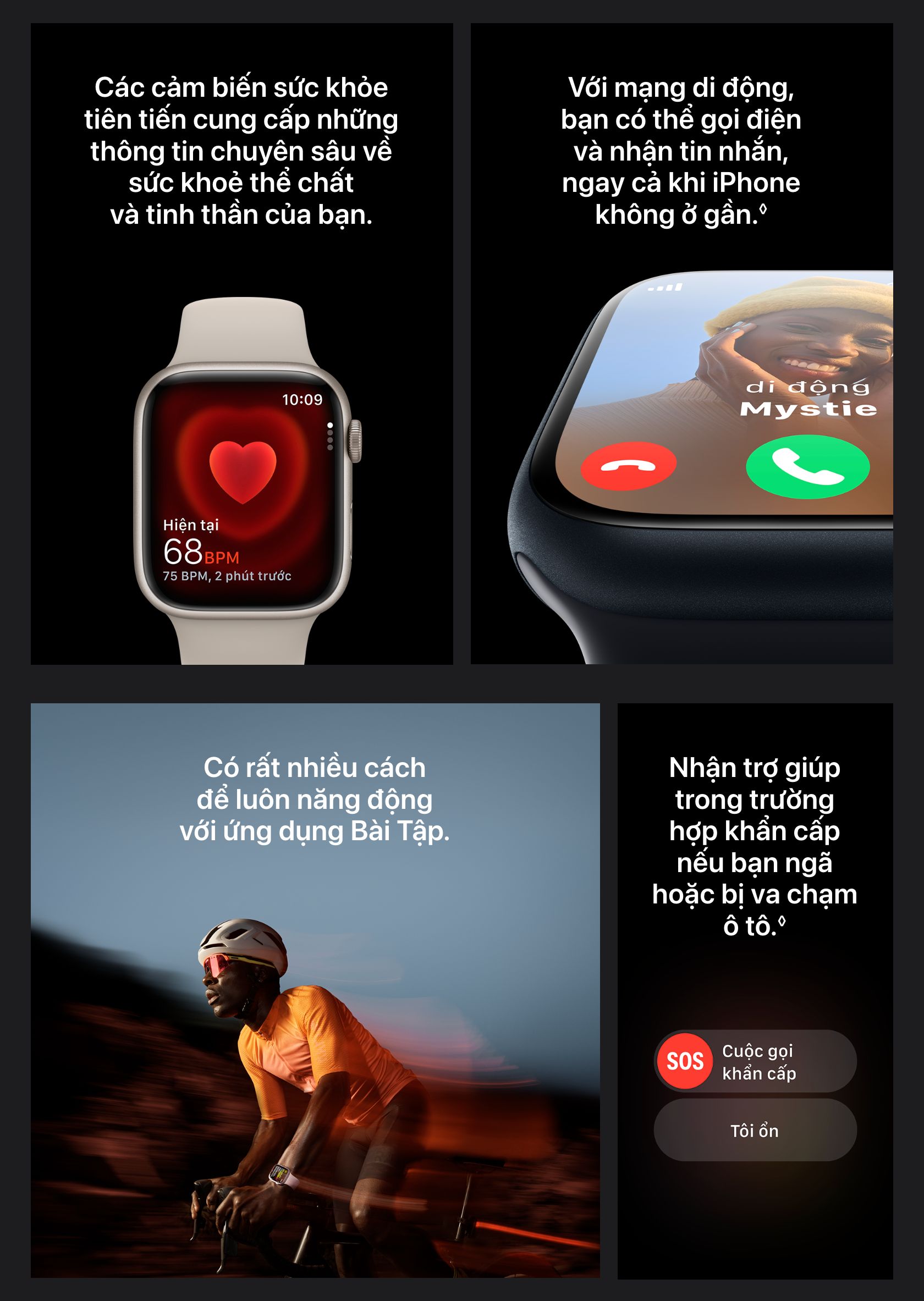 Khi đeo Apple Watch, bạn sẽ có bạn đồng hành trong quá trình tập luyện giúp đo lường mọi chuyển động, mọi bài tập từ chạy bộ, Gym, Yoga, đạp xe,.. tới bơi. Cùng với những thông tin chuyên sâu hữu ích về sức khỏe như nhịp tim, quãng đường, lượng Kcal đốt,.. Và chia sẻ cho những người bạn.