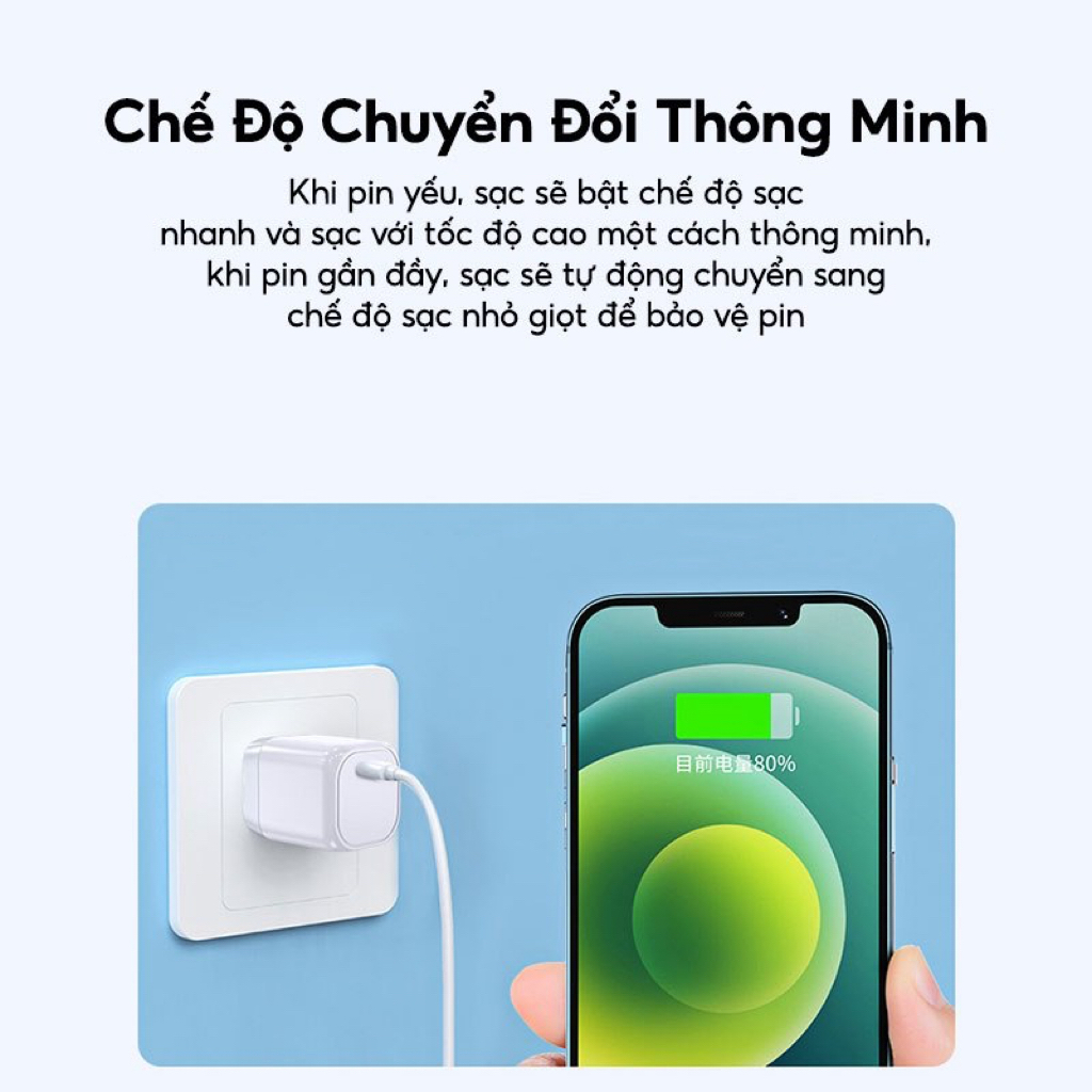 Trang bị chế độ chuyển đổi thông minh, khi pin yếu, sạc sẽ bật chế độ sạc nhanh và sạc với tốc độ cao một cách thông minh, khi pin gần đầy, sạc sẽ tự động chuyển sang chế độ sạc nhỏ giọt để bảo vệ pin
